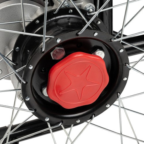 - Pneumatic 22" rear wheels and solid 10" front wheels for a comfortable, stable ride on varied terrain