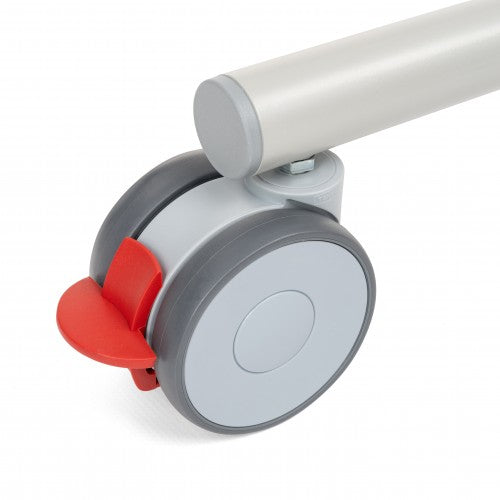 Swivel front wheels and rear brakes allow controlled handling. The foldable design makes it straightforward to store or transport, while the wide support surface promotes comfortable, upright posture during daily movement at home or in care environments.