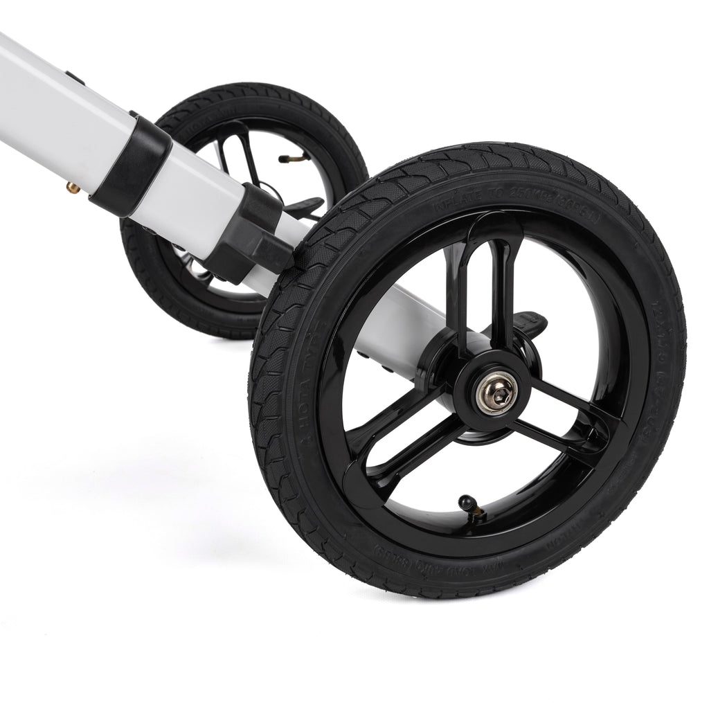 - 12-inch pneumatic wheels for a smooth outdoor ride